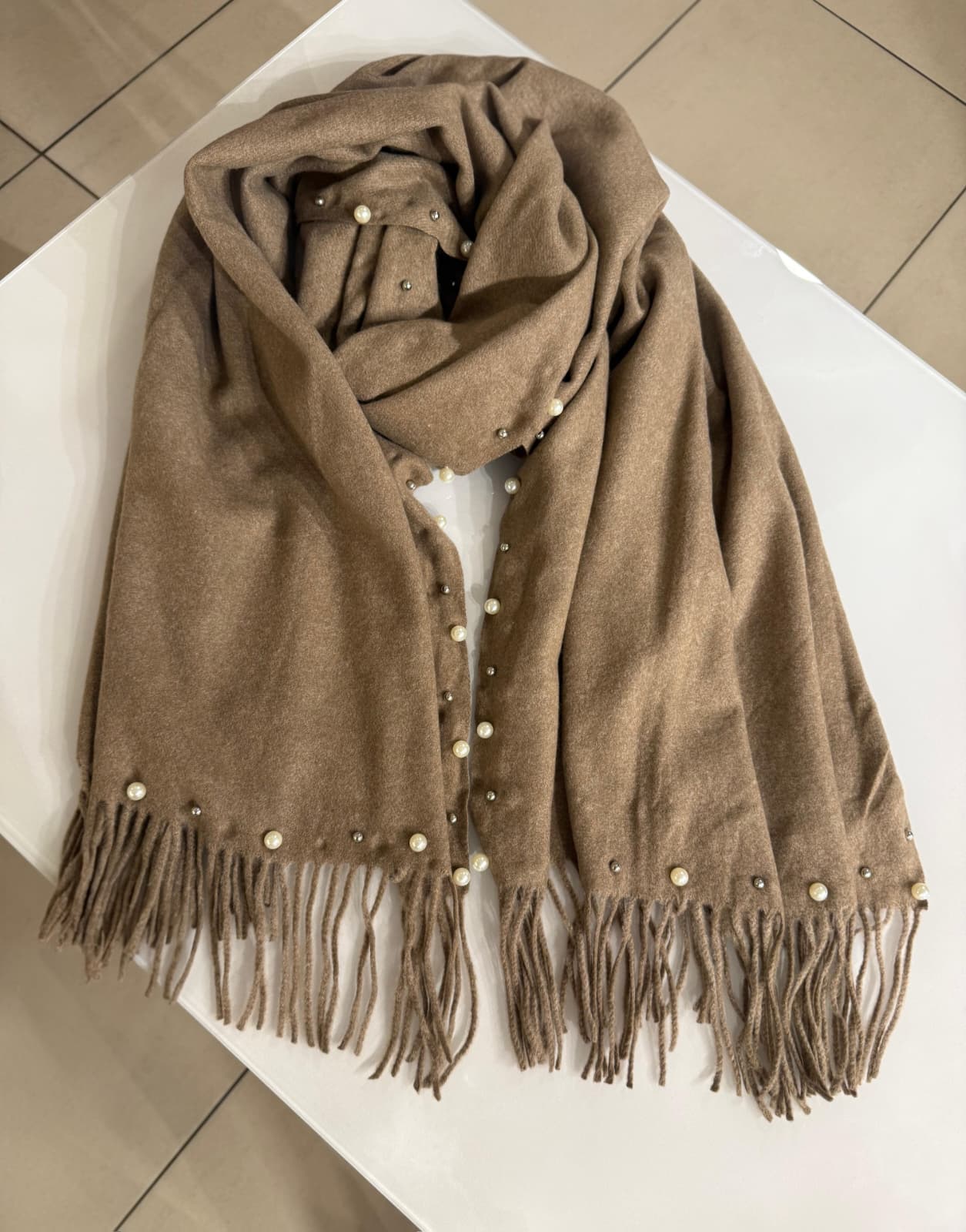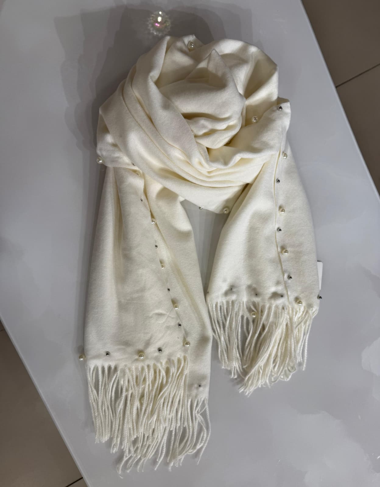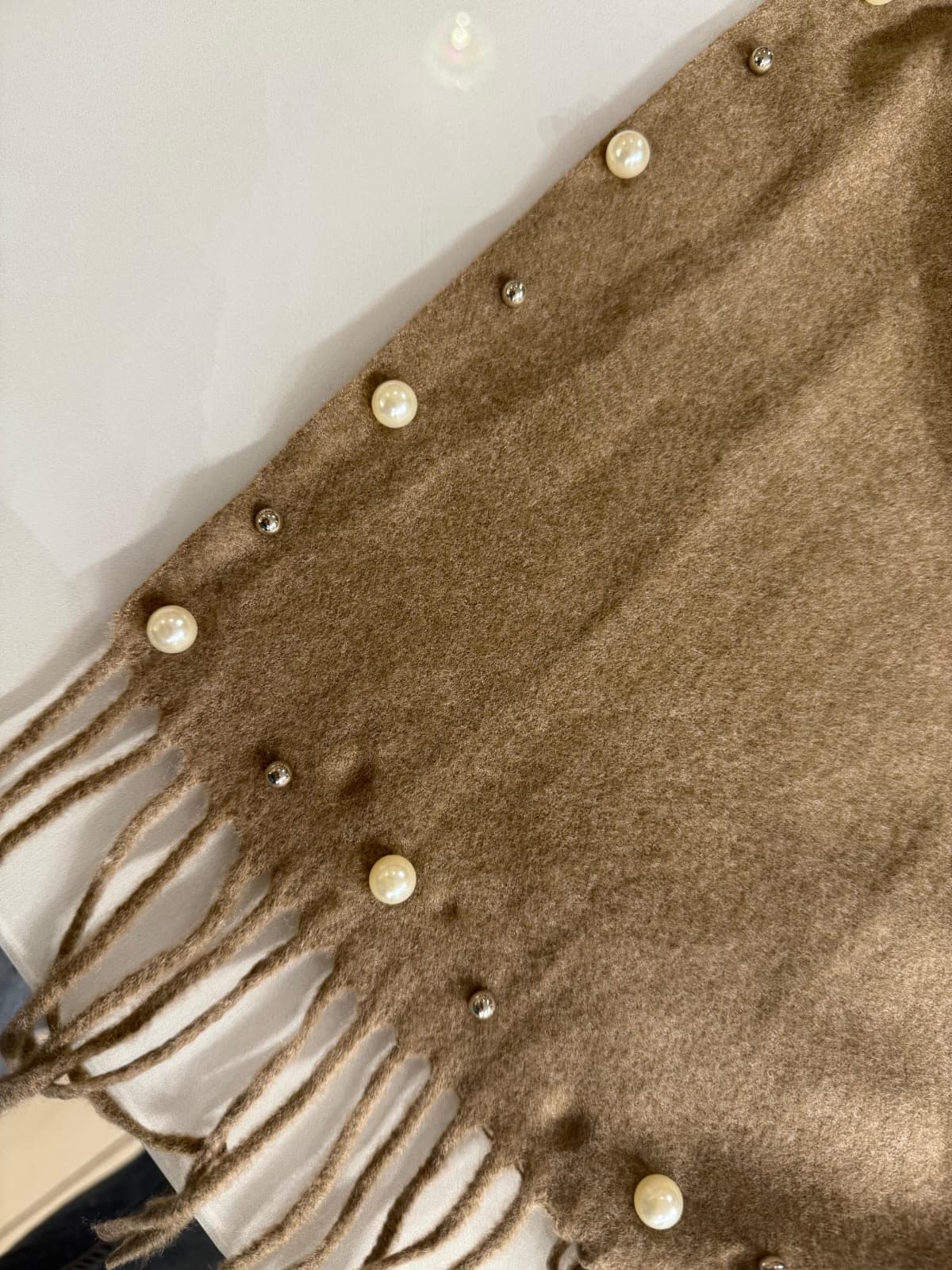 Der Schal besteht aus weichem, atmungsaktivem Material, das sowohl im Winter wärmt als auch im Sommer angenehm leicht ist. Die sorgfältig angebrachten Perlen sind robust und halten auch bei häufigem Tragen und Waschen. Um die Qualität und den Glanz der Perlen zu bewahren, empfehlen wir Handwäsche oder eine schonende Maschinenwäsche im Wäschesack.