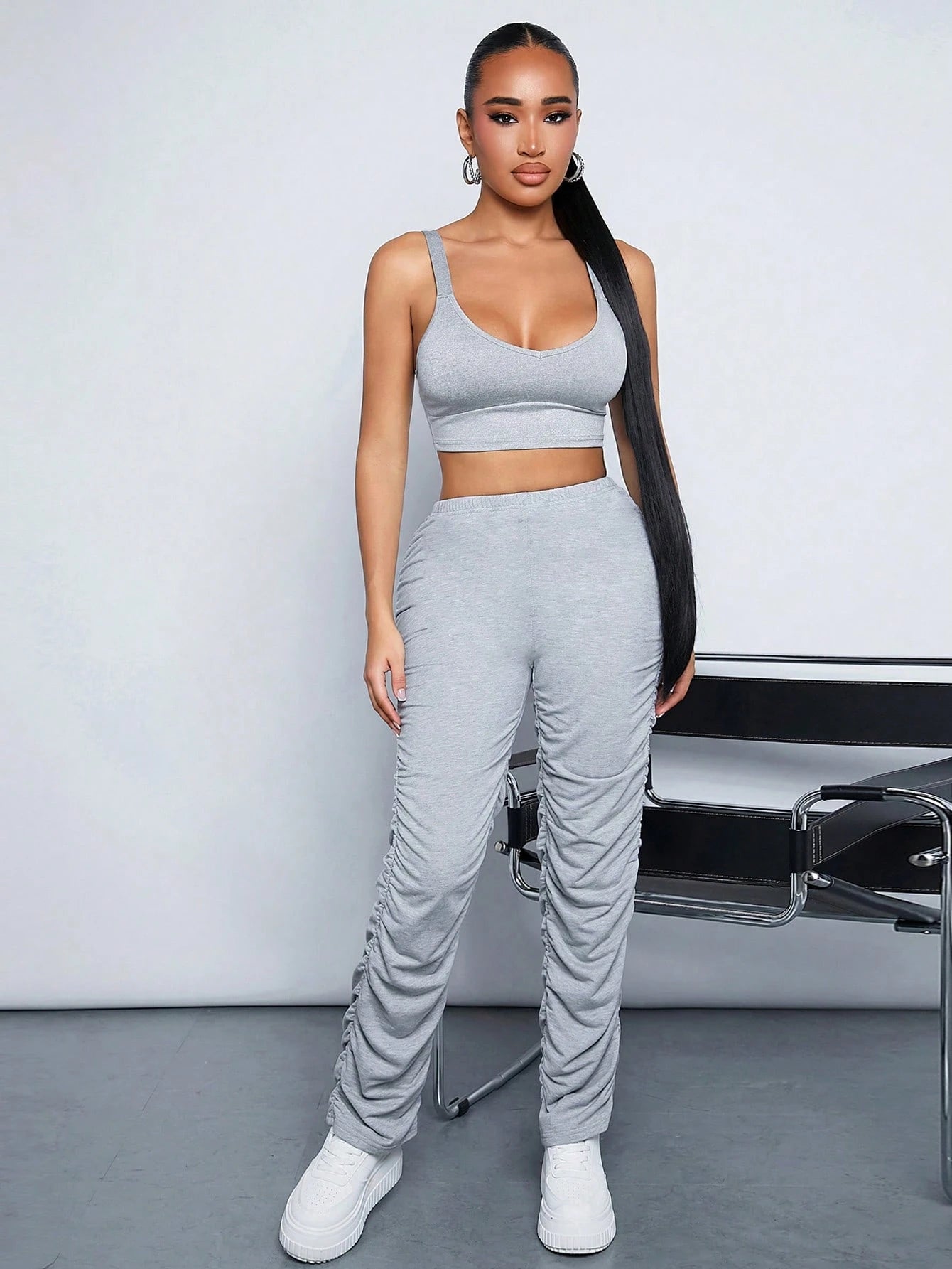 Dieses zweiteilige Damen-Set besteht aus einem stylischen Crop-Top und einer trendigen Hose mit hohem Bund. Der schmeichelhafte Look ist perfekt für Freizeitaktivitäten, Erledigungen oder einen eleganten Streetwear-Style. Das weiche, dehnbare Material sorgt für ganztägigen Tragekomfort, betont Ihre Figur und verleiht Ihnen eine moderne, schlanke Silhouette. Ob elegant mit High Heels oder lässig mit Sneakers – dieses schicke Set bietet mühelos modischen Style in einem einzigen Outfit.