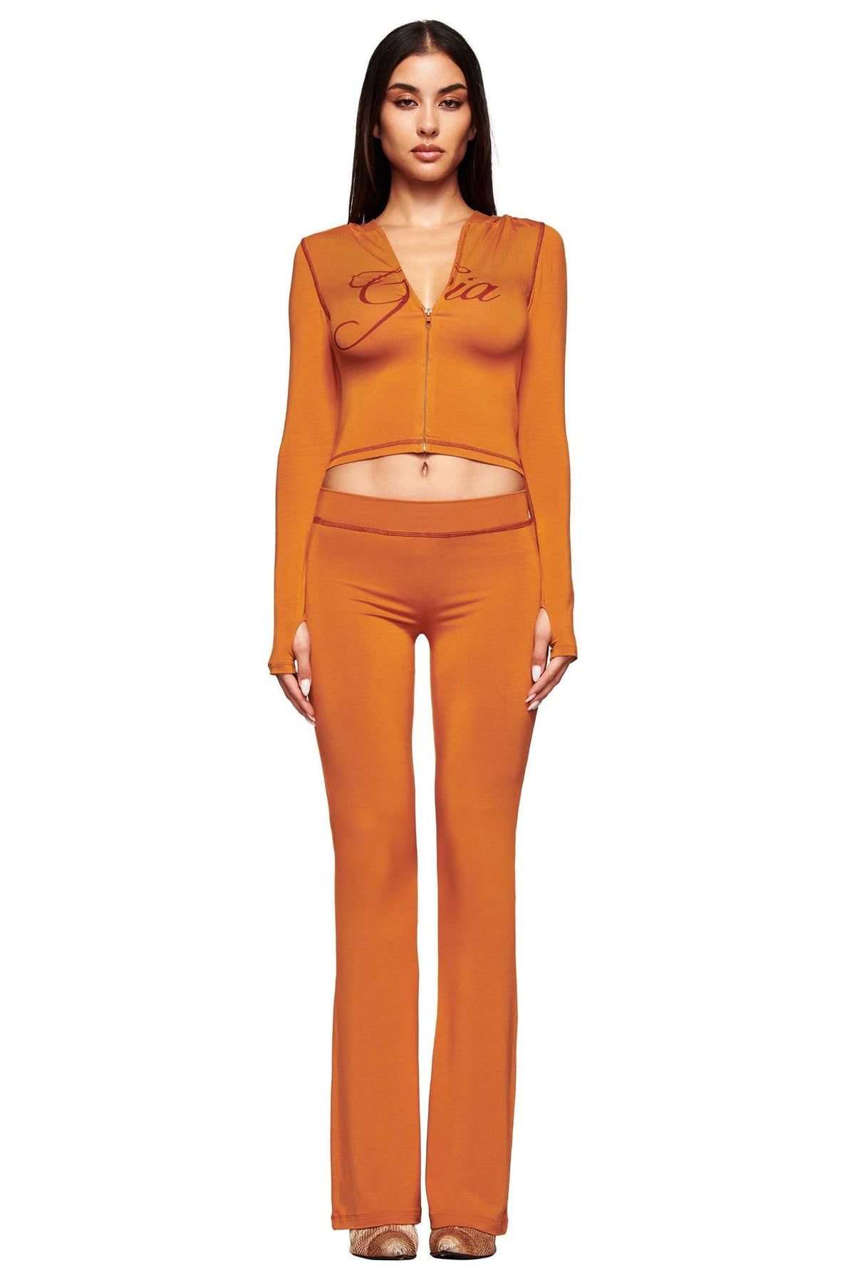 Einfarbiges, zweiteiliges Langarm-Set für Damen mit offenem Halsausschnitt