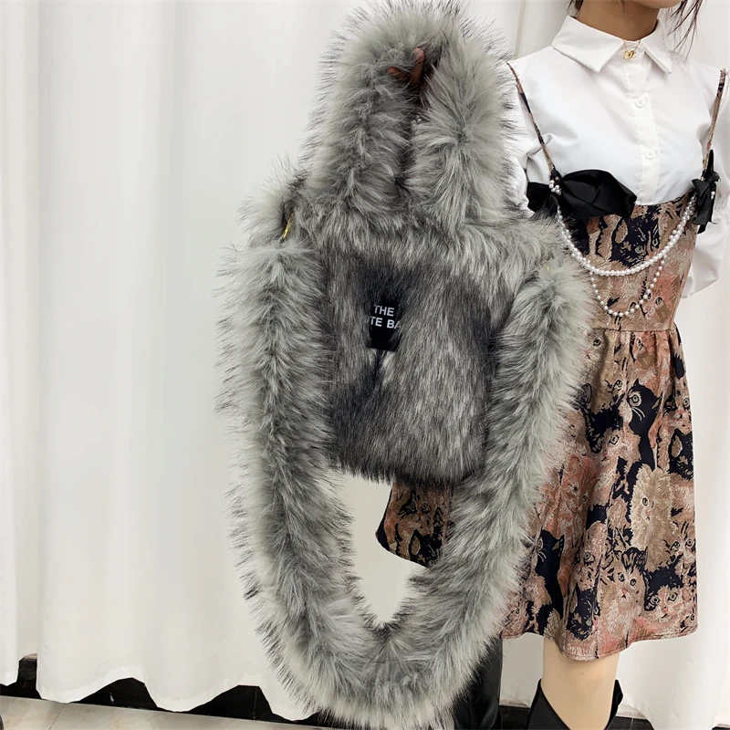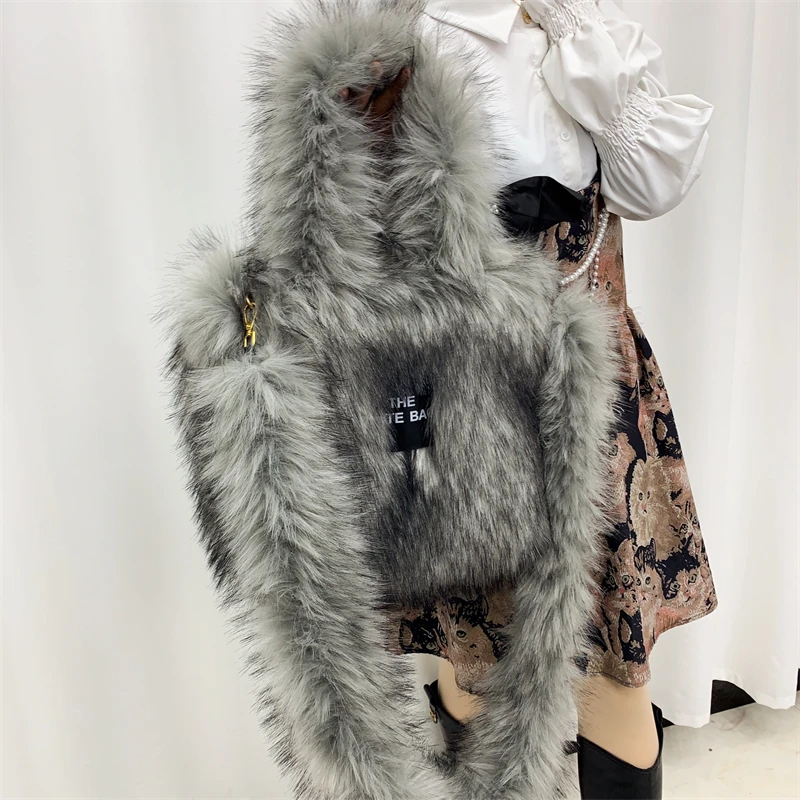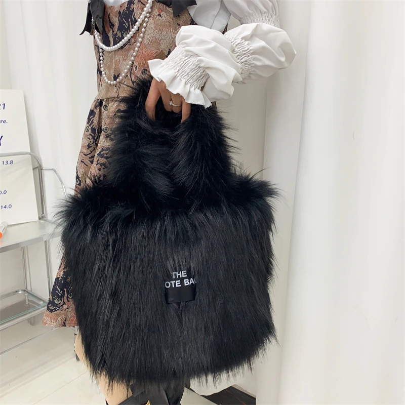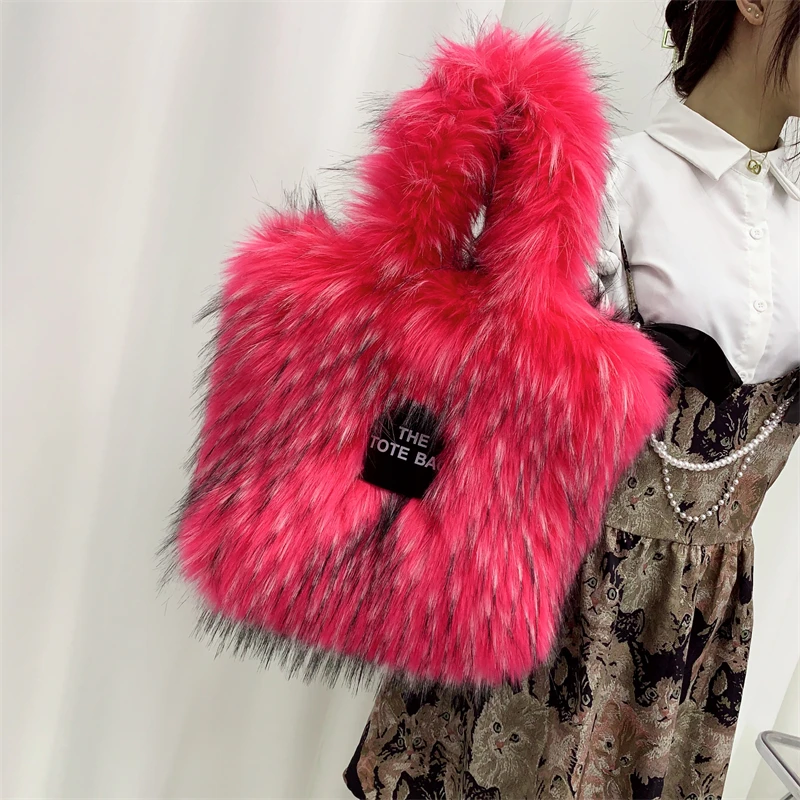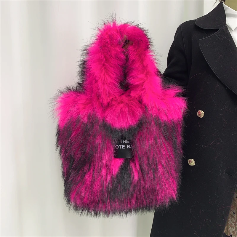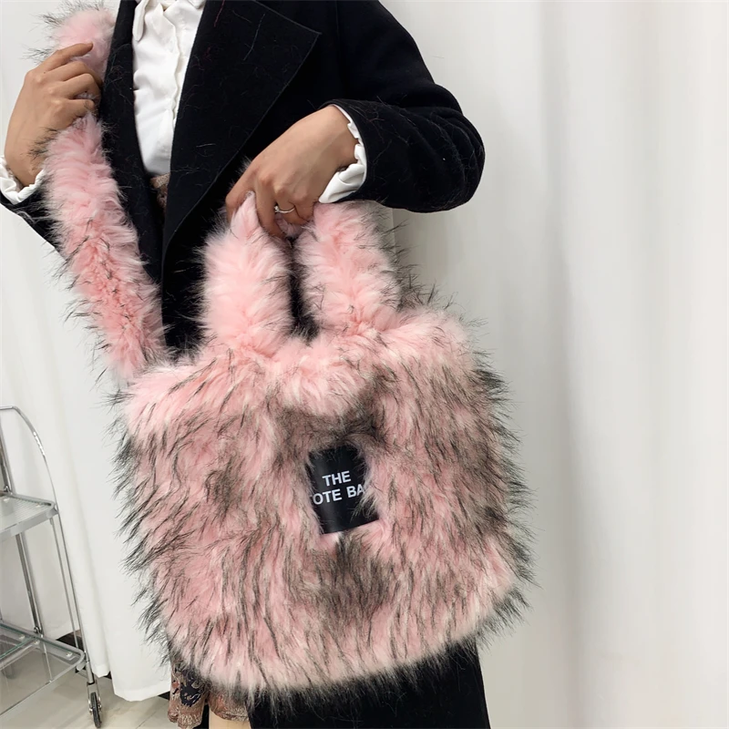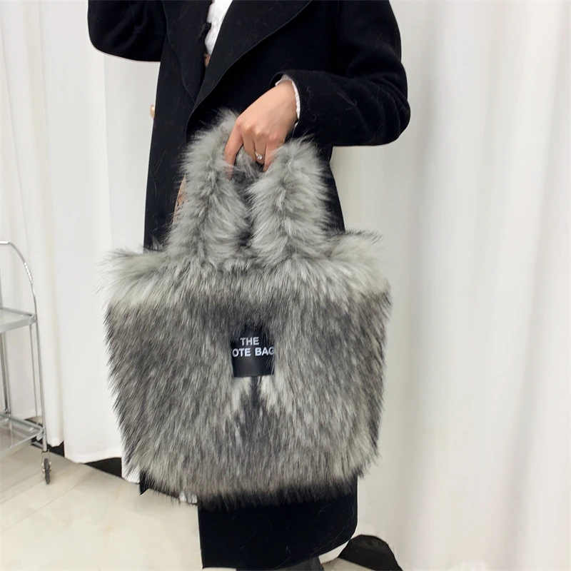 Luxury Designer The Tote Bags for Women Furry Leather Branded Fur Shoulder Bags Female Large Crossbody Handbags