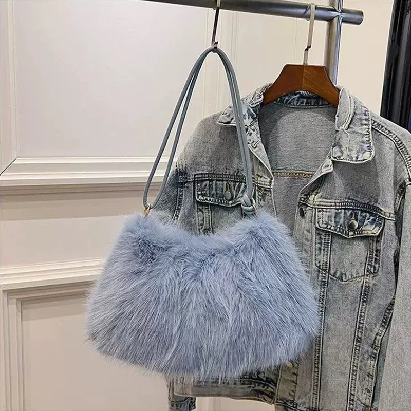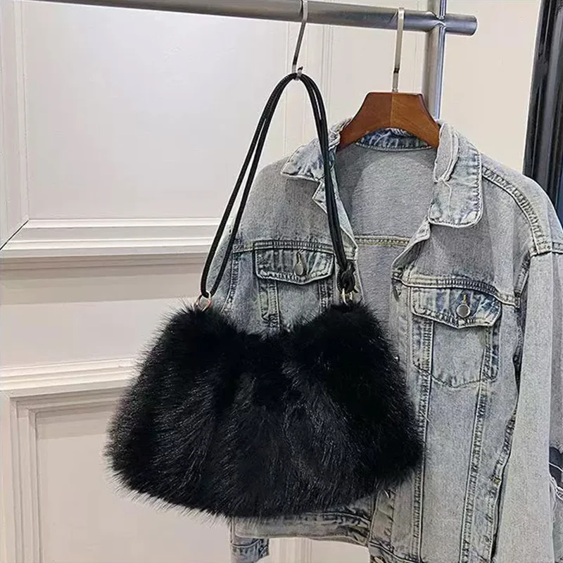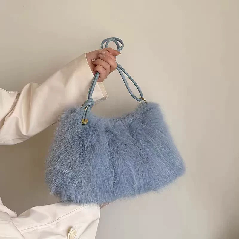Women's Large Capacity Shoulder Bag Solid Color Plush Imitation Fur Handbag For Autumn And Winter Fashion