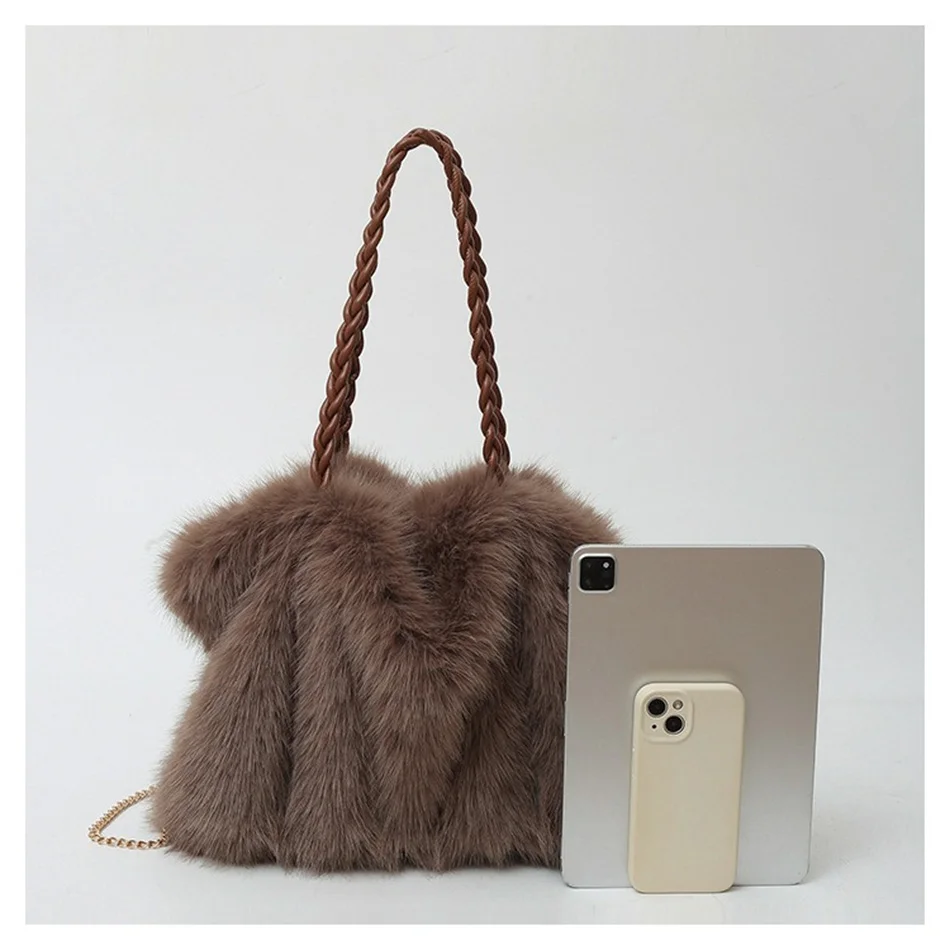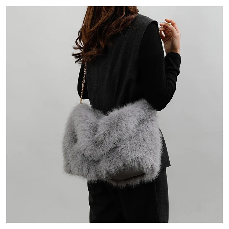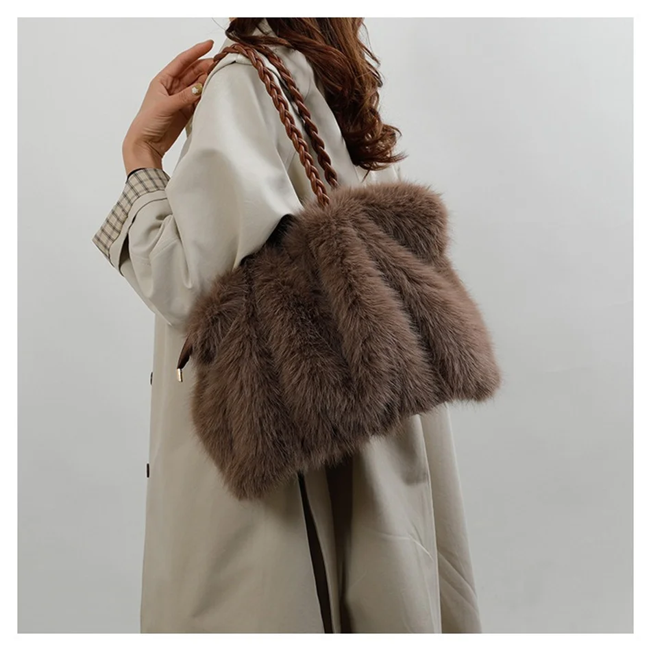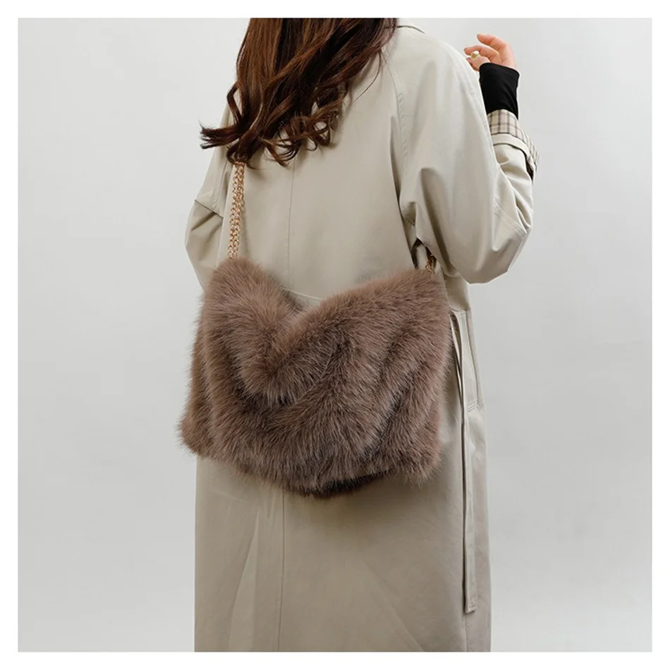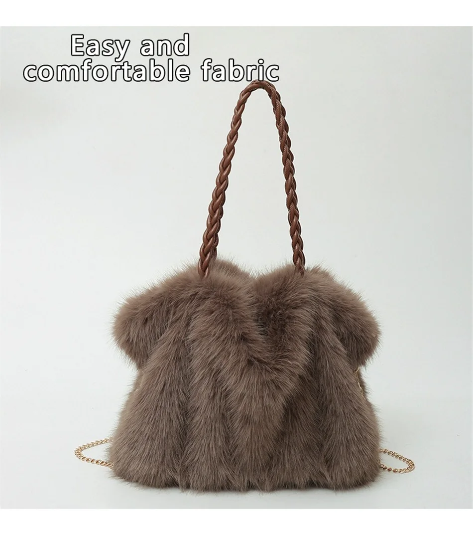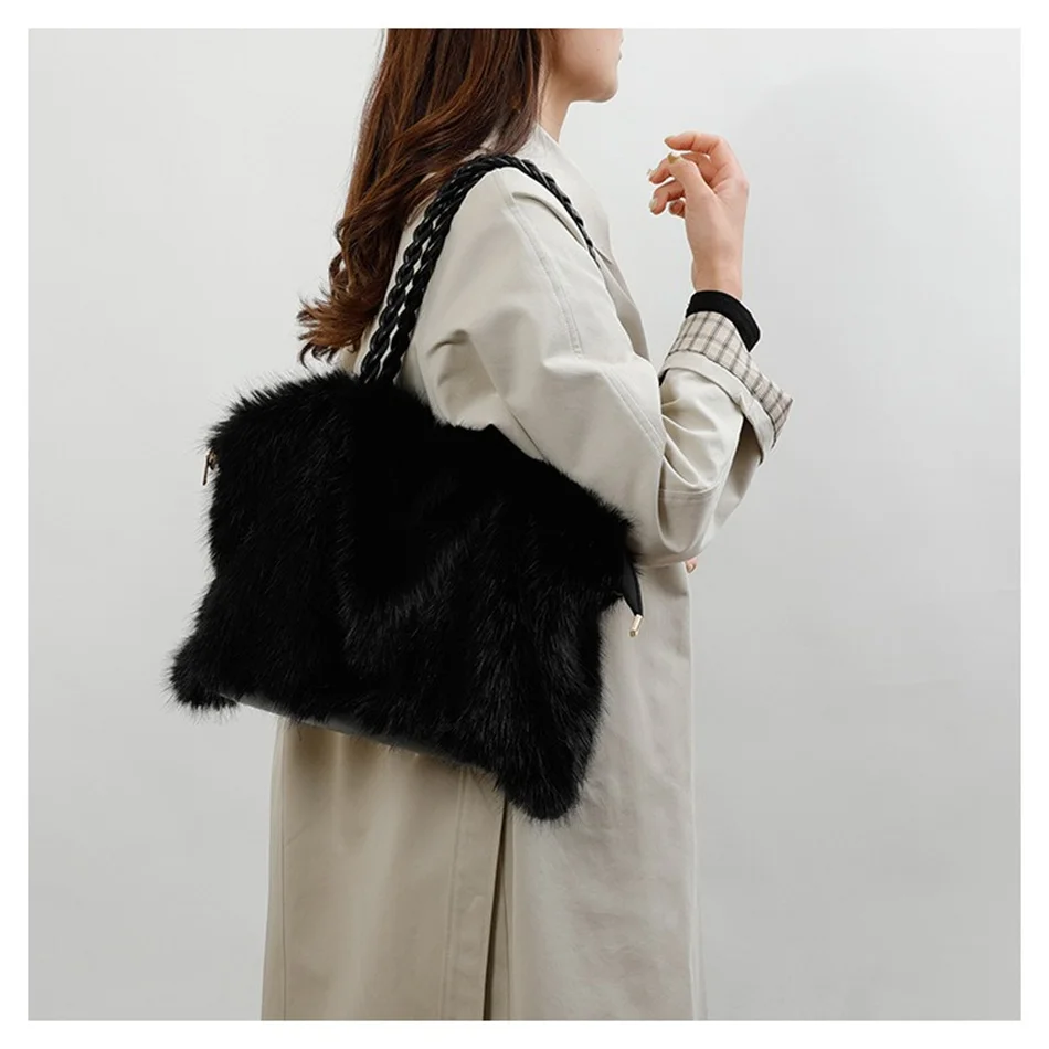 Women's Plush Shoulder Bag High-end Fashion Luxury Soft Faux For Skin Shoulder Bag Faux Fur Women's Bag