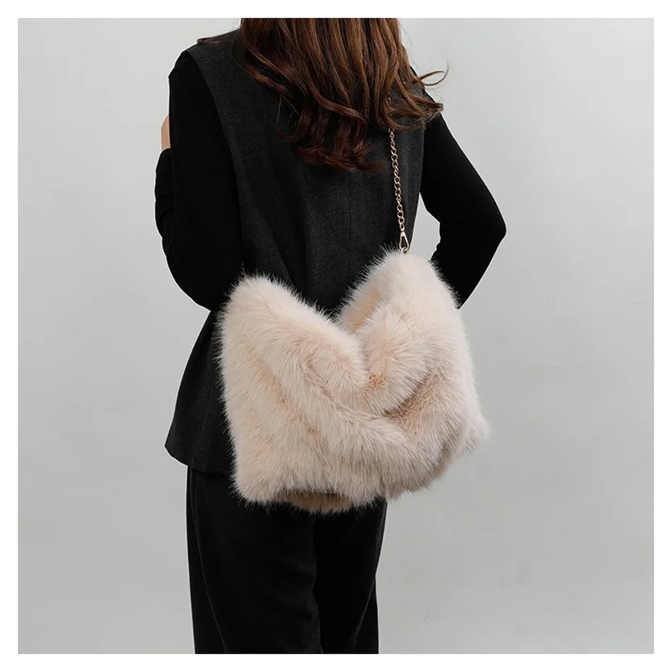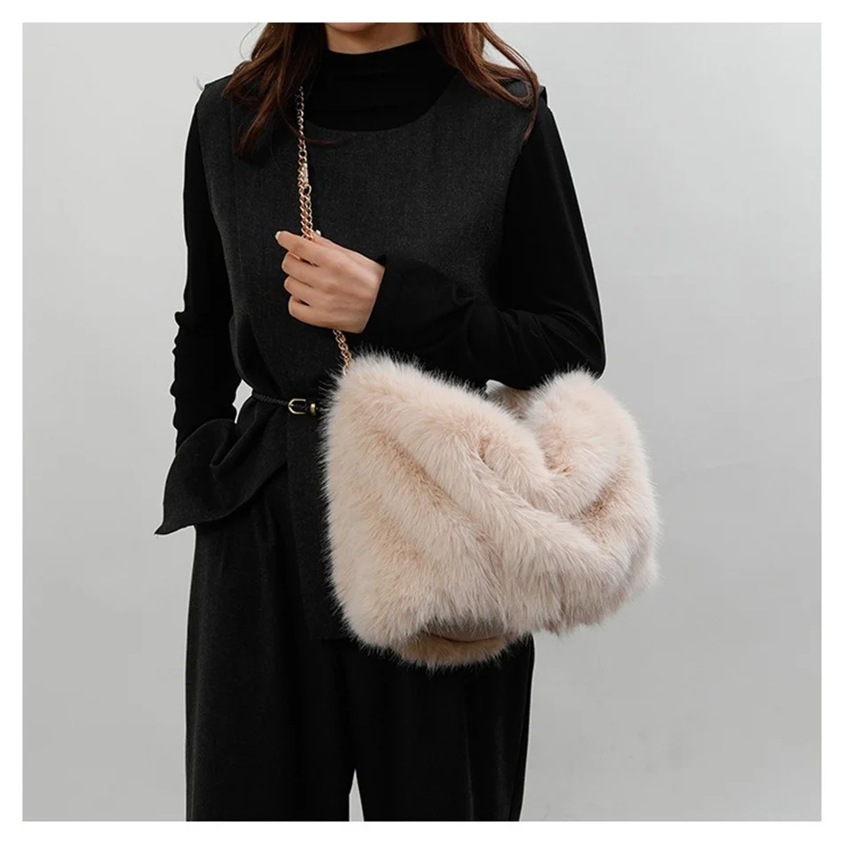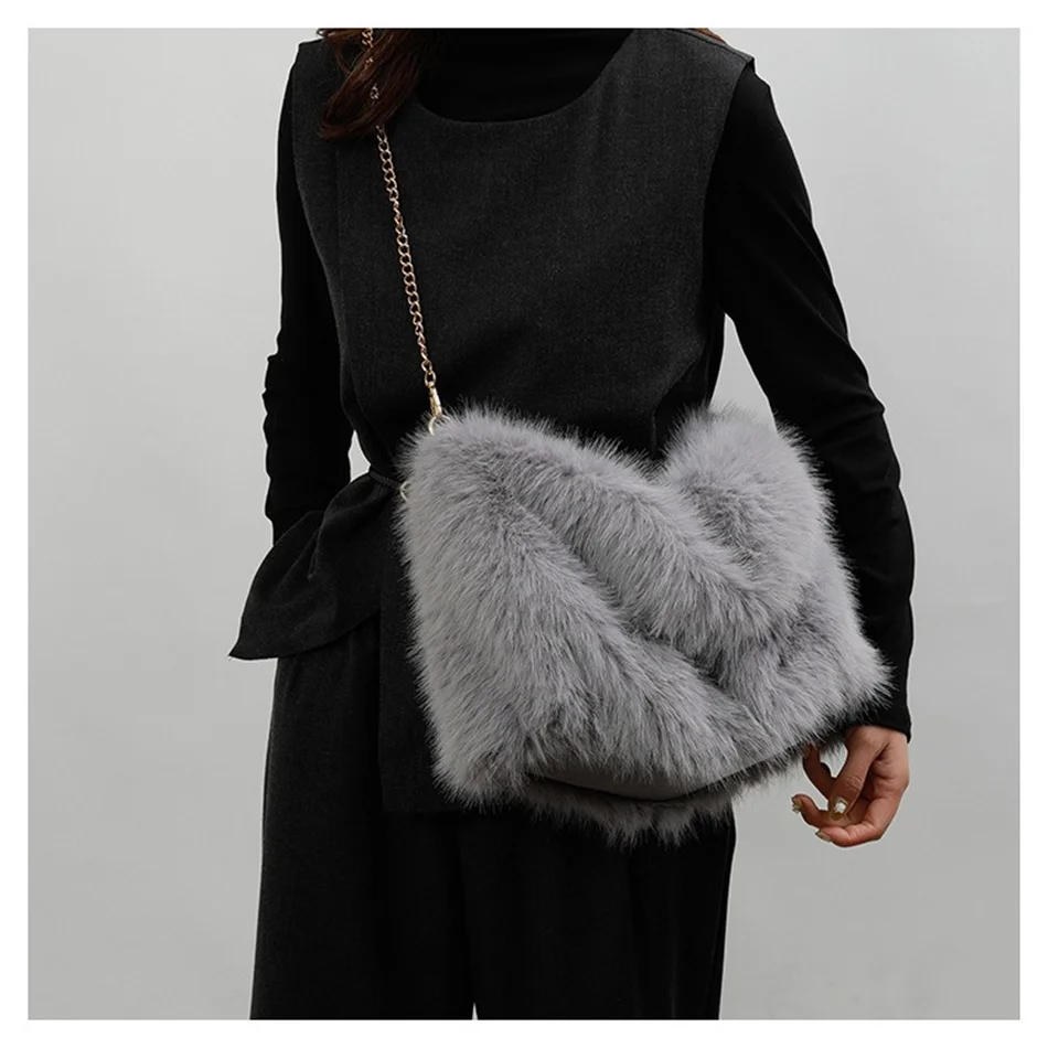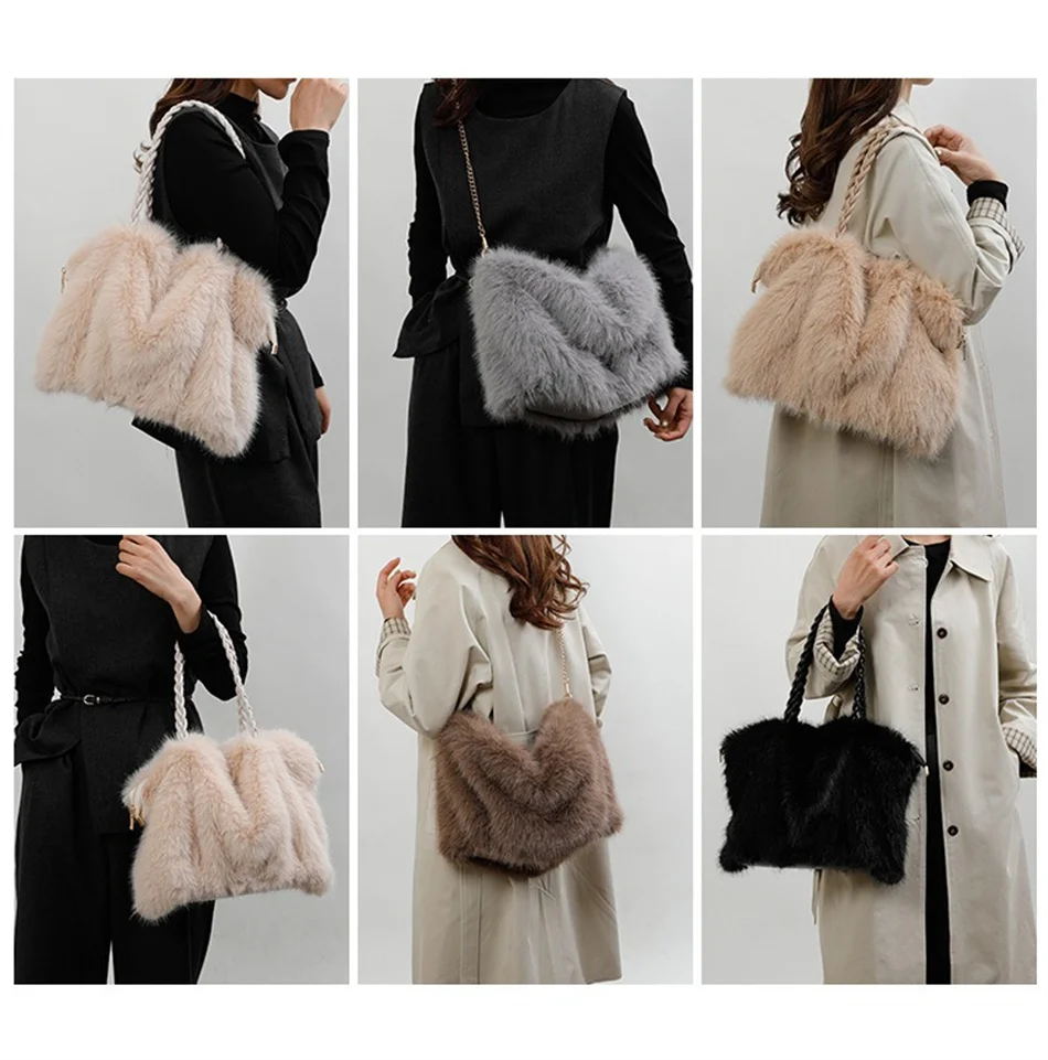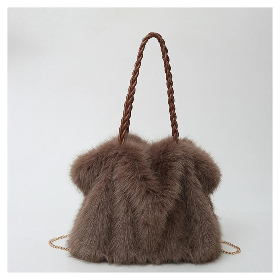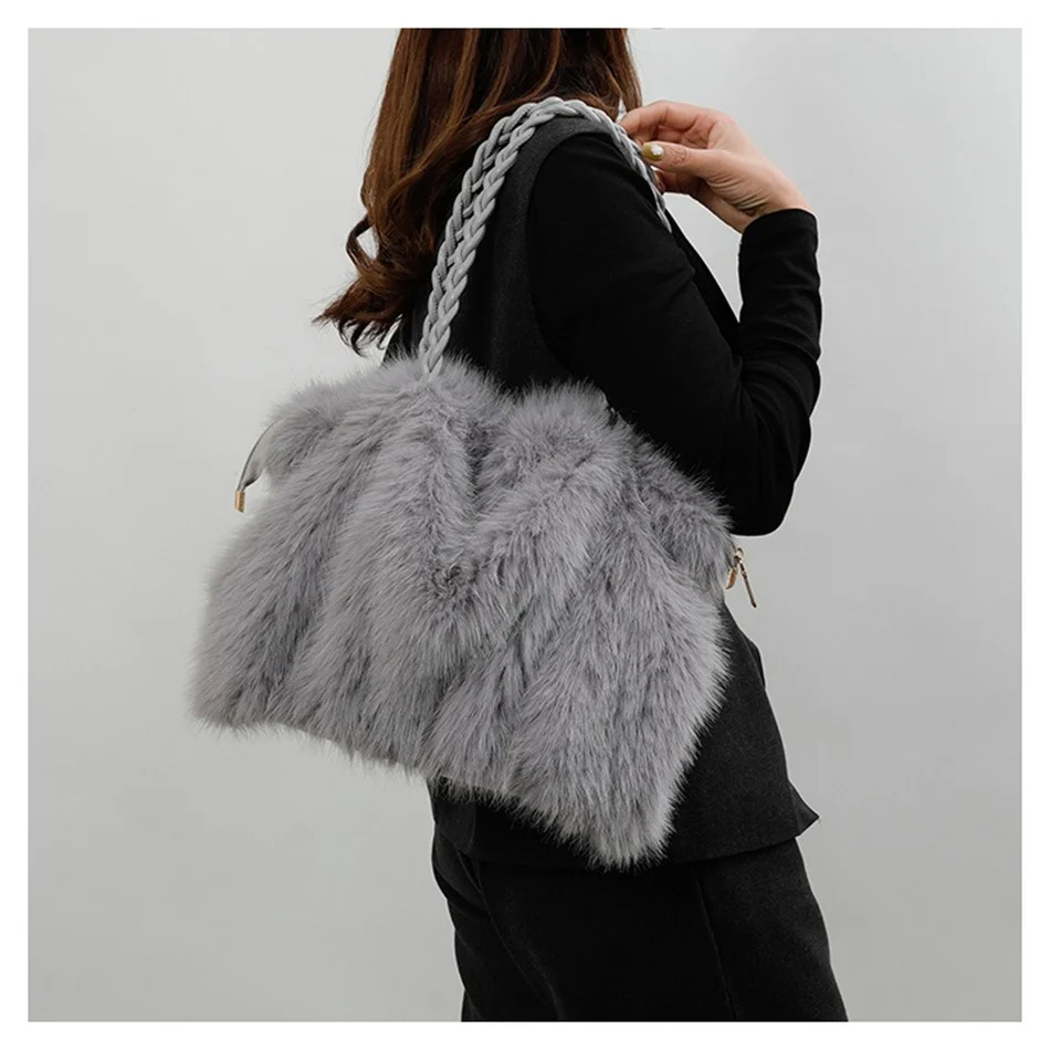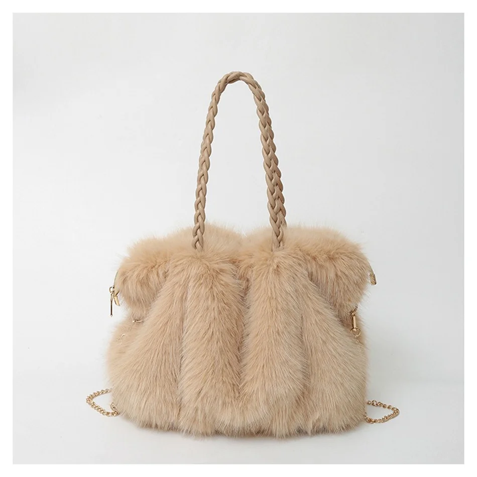 Women's Plush Shoulder Bag High-end Fashion Luxury Soft Faux For Skin Shoulder Bag Faux Fur Women's Bag